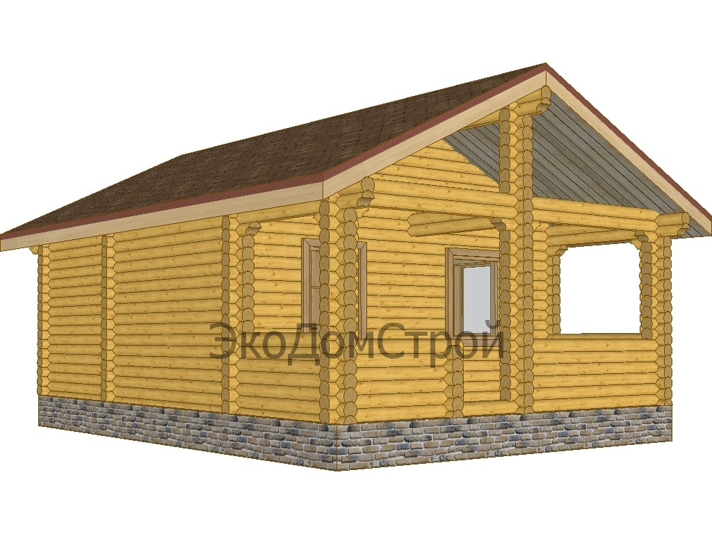 Характеристики: Площадь: 37,8 м² Размер: 7,6 х 5,6 м Диаметр бревна: 180 мм Объем бревна: 21,1 м³